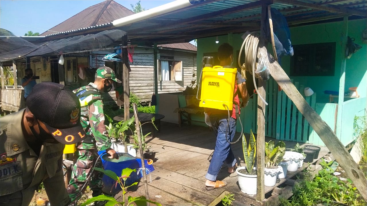 SERIBUPARITNEWS.COM,Pulau Kijang,"-Babinsa Koramil 07/Reteh Kodim 0314/Inhil Bersama Team Satgas Covid-19 Kecamatan Reteh laksanakan kegiatan memutus Penyebaran Covid-19  yaitu dengan penyemprotan cairan Disinfektan ditempat rumah warga yang Positif Terpapar virus Corona atau juga yang di sebut Covid-19,.Minggu 30/05/2021