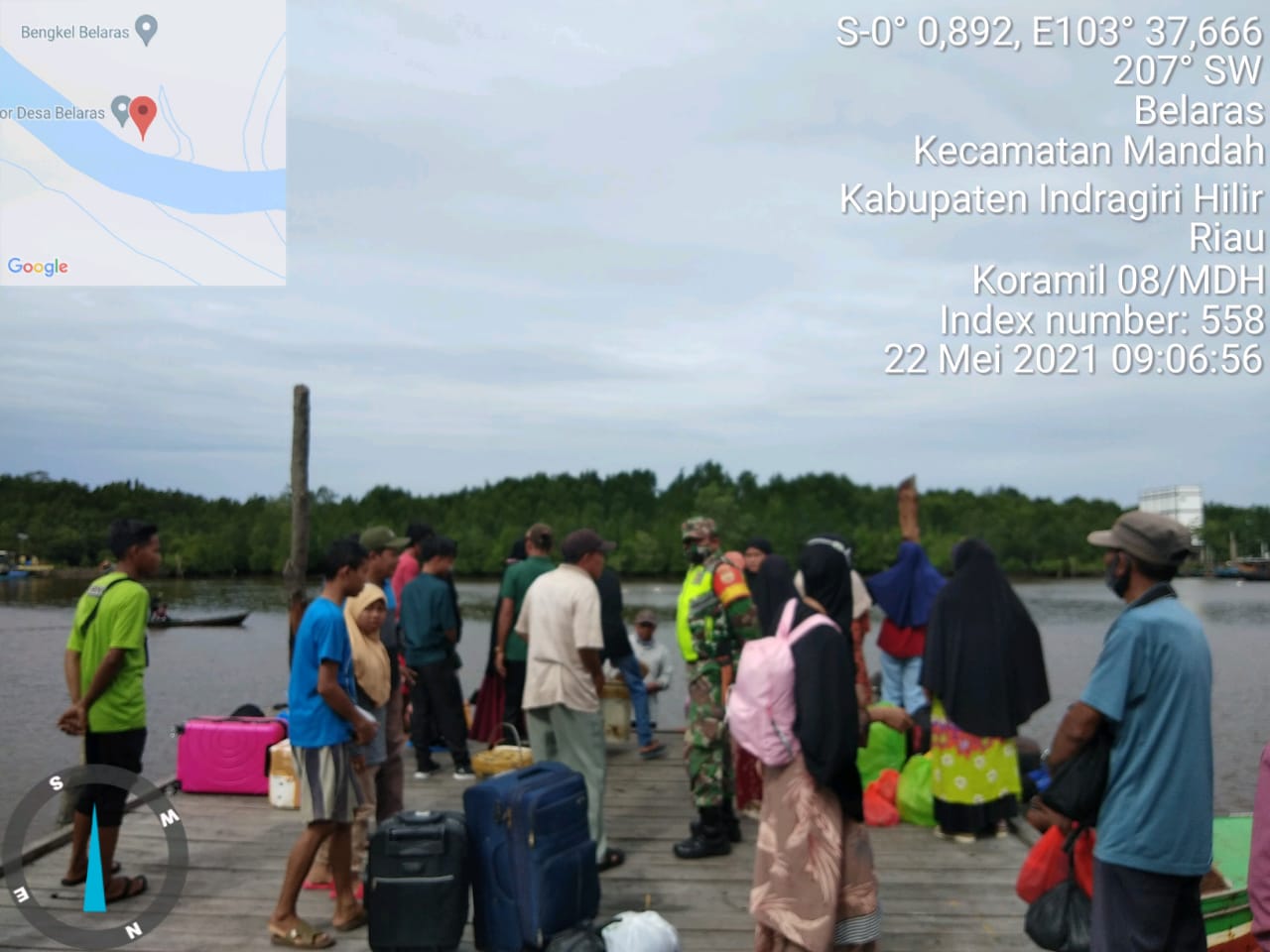 SERIBUPARITNEWS.COM,MANDAH - Mobilitas warga di Pelabuhan Cukup padat, kerap membuat kerumunan,  Babinsa Koramil 08/Mandah Sertu Haris Moni  gencar melaksanakan penegakan disiplin protokol kesehatan Sabtu (22/05/2021)
