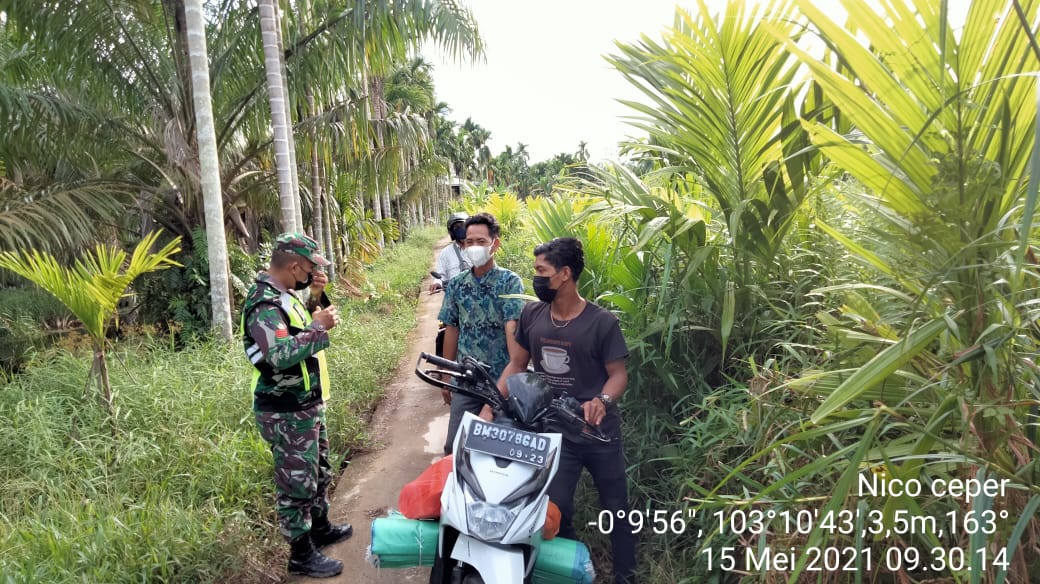 SERIBUPARITNEWS.COM, GAUNG ANAK SERKA - Sembari melaksanakan Silaturahmi di Hari Lebaran ini, Babinsa Koramil 05/Gas, praka Niko melaksanakan penegakkan disiplin prokes kepada warga Sabtu (15/05/2021)
