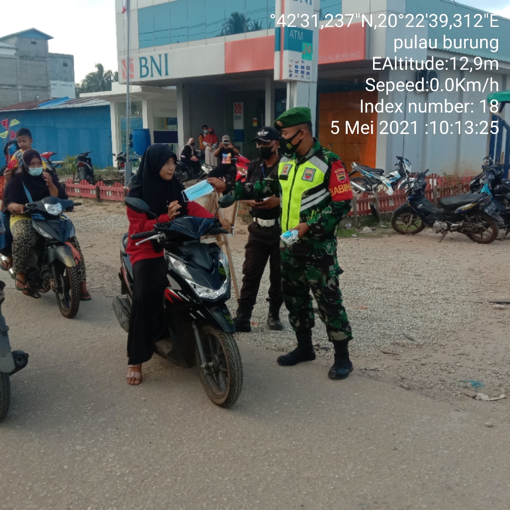 Hal ini dilakukan Babinsa Koramil 11/Pulau Burung Kodim 0314/Inhil Praka Dedi Hariyawan dan Anggota UPT Puskesmas Pulau burung melaksanakan kegiatan Pembagian Masker gratis