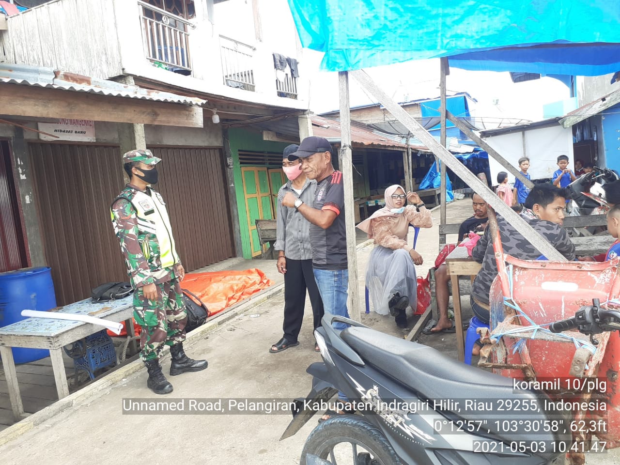 SERIBUPARITNEWS.COM, PELANGIRAN - Guna Menambah Pemahaman Warga tentang Protokol  kesehatan,Serda Dodi Asril Babinsa Koramil 10/Pelangiran Kodim 0314/Inhil Melaksanakan Himbauan Senin (03/05/2021)