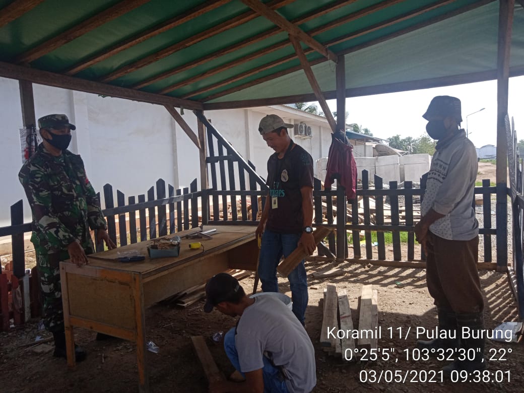 SERIBUPARITNEWS.COM, PULAUBURUNG -  Babinsa Koramil 11/Pulau Burung Kodim 0314/Inhil  Serda Supandi Jaya  Melaksanakan kegiatan Komsos dengan Pekerja Bangunan di Desa Pulau Burung Senin (03/05/2021)