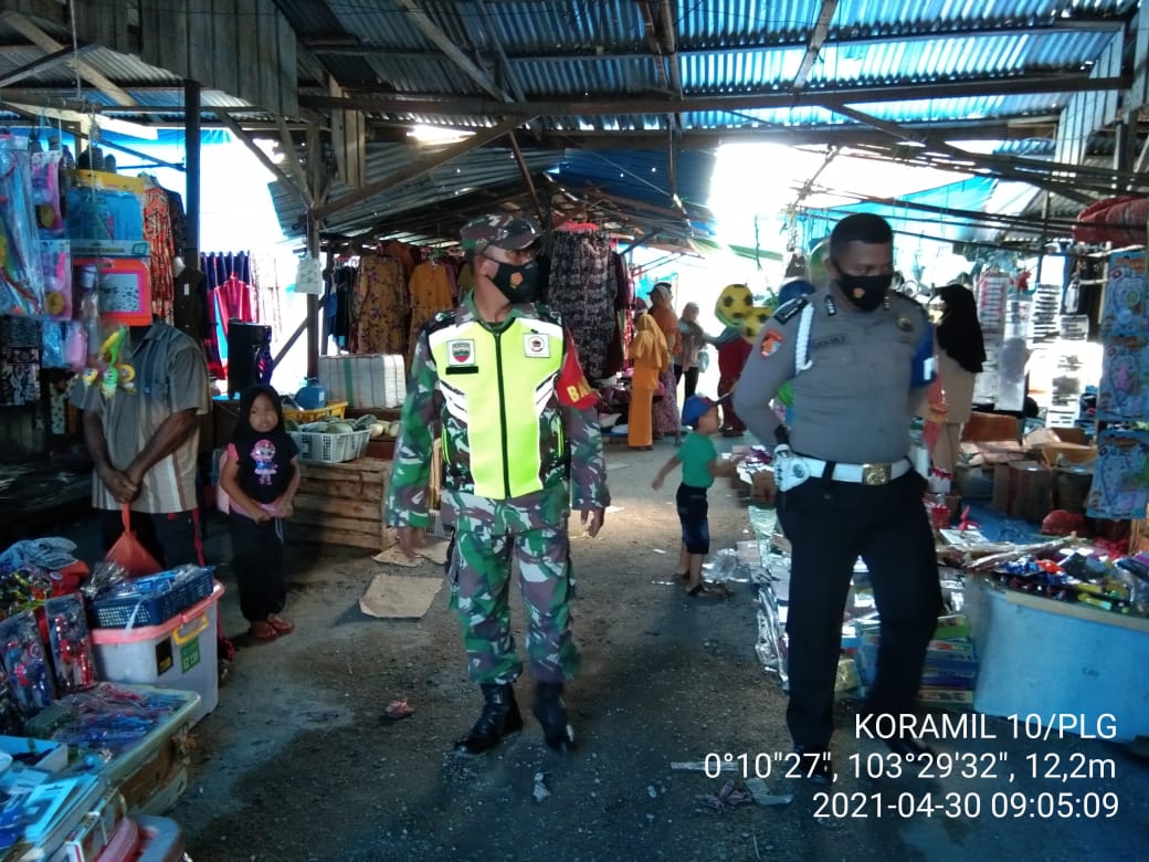 SERIBUPARITNEWS.COM, PELANGIRAN - Babinsa Koramil 10/Pelangiran Kodim 0314/Inhil Serma Sri Wahyono terus melaksanakan kegiatan himbauan penegakan protokol kesehatan Jumat (30/04/2021)