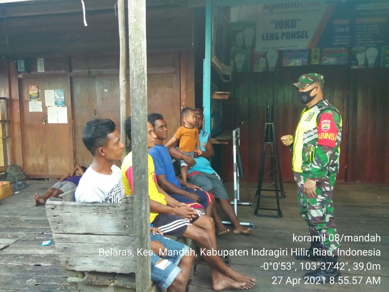 Babinsa Koramil 08/Mandah .Serma M. Darmansyah disela patroli keliling desa segera menghampiri dan memberikan himbauan Selasa (27/04/2021)