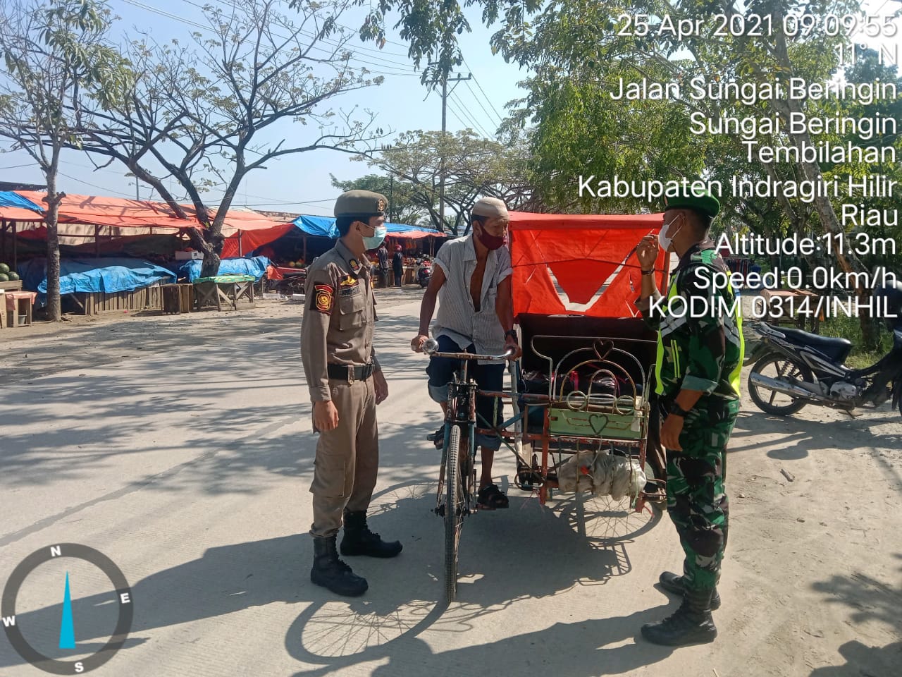 SERIBUPARITNEWS.COM, TEMBILAHAN - Di Posko Terpadu Penegakan Disiplin di simpang 4 sungai beringin Babinsa Koramil 01/Tembilahan Kodim 0314/Inhil Sertu Surahman kembali melaksanakan penegakkan disiplin protokol kesehatan Minggu (25/04/2020l1)