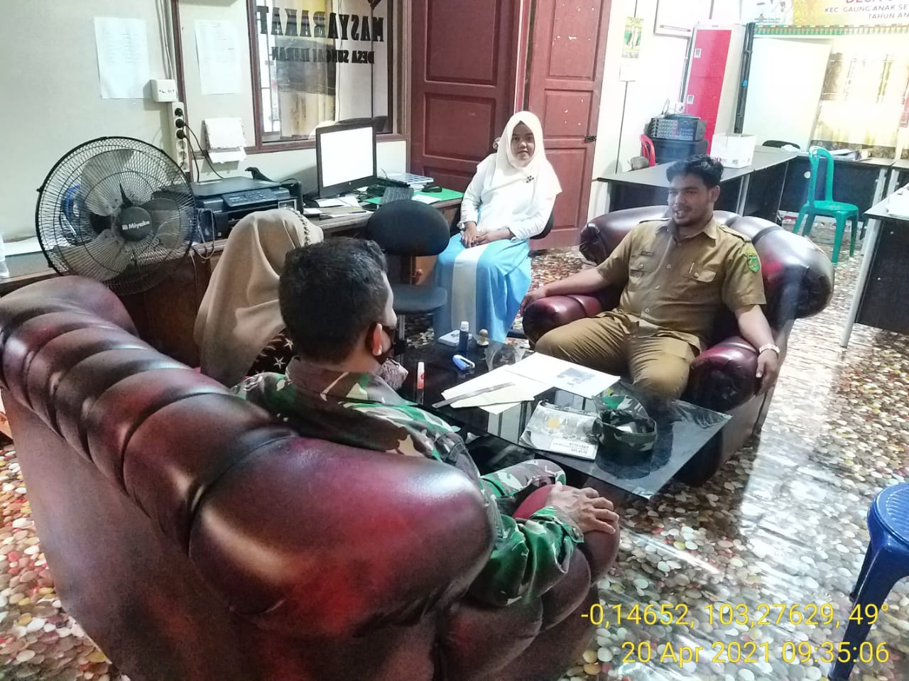 SERIBUPARITNEWS.COM, PULAUBURUNG - GAS - Babinsa  Koramil 05/Gas, Serka Nawawi melaksanakan Komsos bersama perangkat desa di  Desa Sei Iliran Kecamatan Gaung Anak Serka Selasa (20/04/2021)