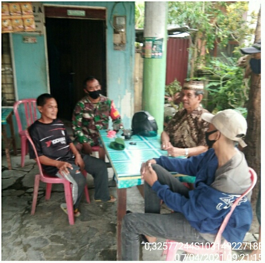 SERIBUPARITNEWS.COM, TEMBILAHANHULU - Babinsa Seberang Tembilahan Barat Koramil 01/Tembilahan Sertu Syafriadi Koto melaksanakan Komunikasi Sosial bersama RT 01 RW 01 Saudara Baharudin di Kecamatan Tembilahan Hulu Rabu (07/04/2021)