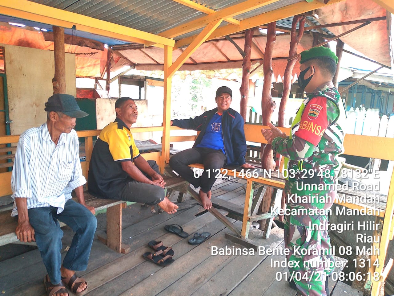 SERIBUPARITNEWS.COM, MANDAH - Praka Hendri Babinsa Koramil 08/Mandah Kodim 0314/Inhil Melaksanakan penegakan disiplin protokol kesehatan Covid kepada warga yang berada di Pelabuhan Penyeberangan pasar Mandah Kelurahan Khairiah Mandah Kecamatan Mandah Kab. Inhil Kamis (01/04/2021)