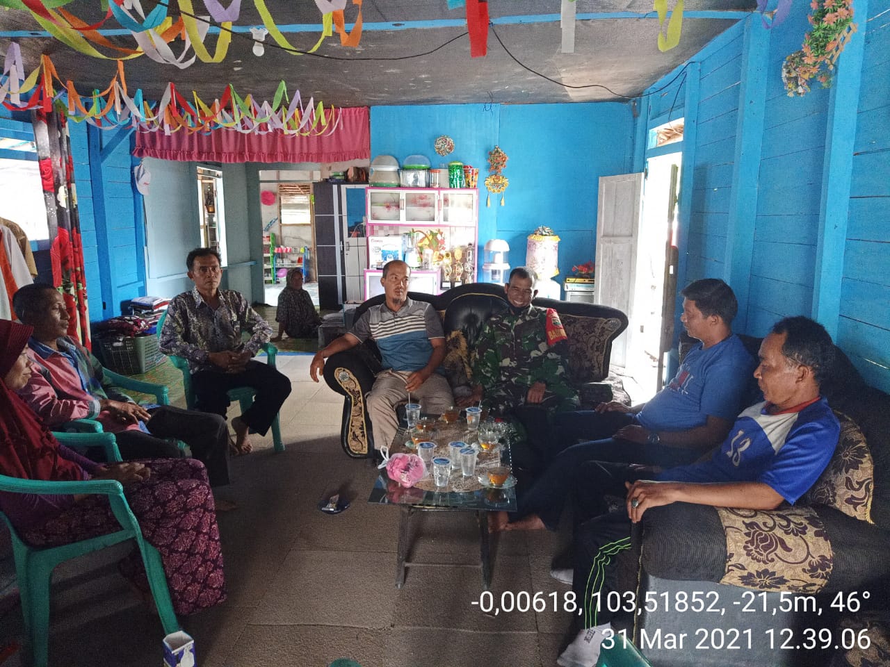 SERIBUPARITNEWS.COM, MANDAH - Serka H. Situmorang Babinasa Koramil 08/Mandah Melaksanakan komunukasi Sosial kepada  Ketua RT Bapak Khairuzal di rumah warga di Kelurahan Khairiah Mandah Rabu (31/03/2021)