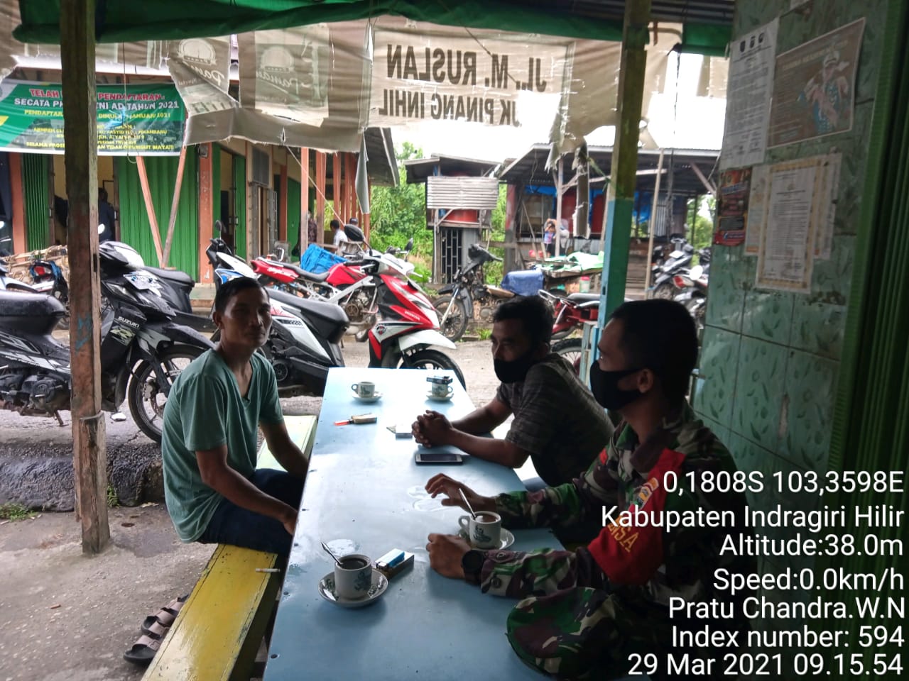SERIBUPARITNEWS.COM GAUNG ANAK SERKA - Menjelang tengah hari dan makan siang ditengah aktifitas yang padat merayap,Pratu Candra Winata menyempatkan berbaur dengan warga sekitar di Pasar Teluk Pinang Senin (29/03/2021)