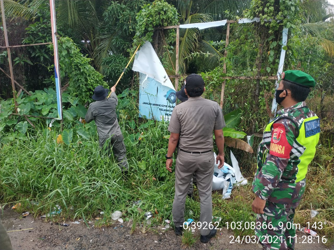 SERIBUPARITNEWS.COM, TEMBILAHAN - Serma Indra Mukri Babinsa Koramil 01/Tembilahan Kodim 0314/Inhil Dampingi Satpol PP Inhil Penertiban Reklame tanpa Ijin di Kecamatan Tembilahan Hulu Kab Inhil.Rabu (24/03/2021)