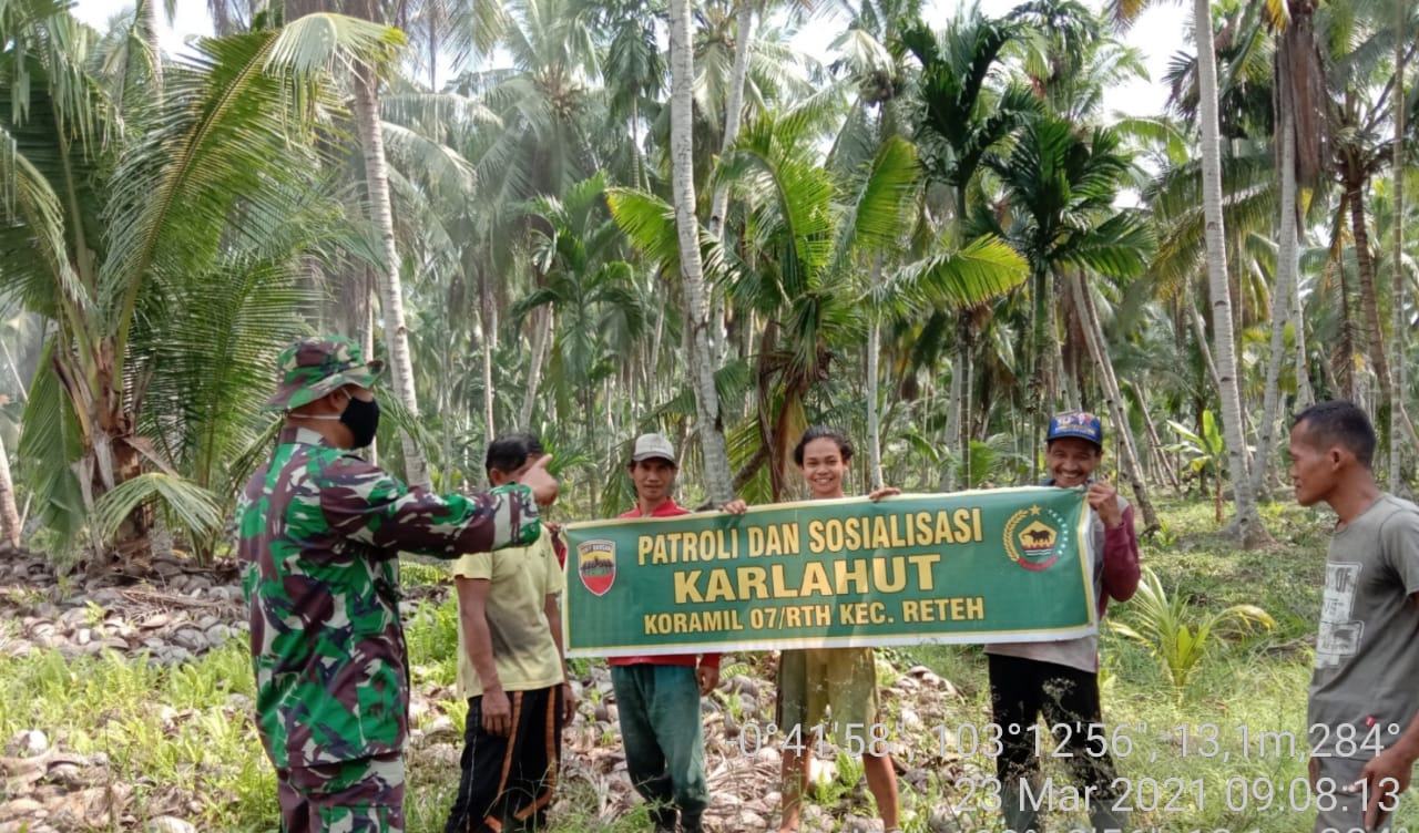 Babinsa Koramil 07/Reteh Berperan Aktif Melaksanakan Patroli dan Sosialisasi Pencegahan Karhutla.
