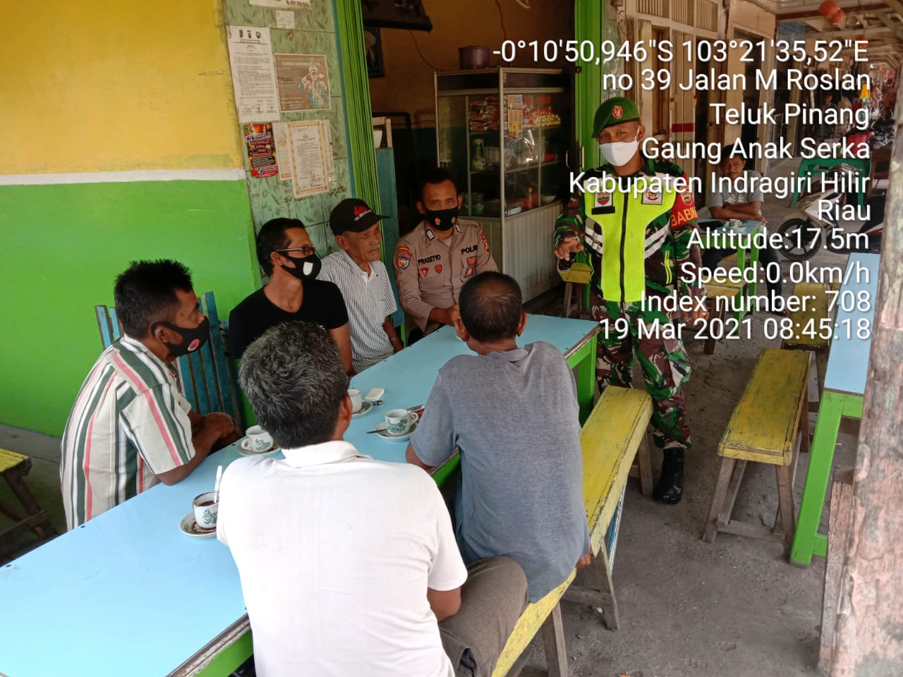 SERIBUPARITNEWS.COM, GAUNG ANAK SERKA - Menjelang Sholat Jumat di Tengah kesibukannya selaku Babinsa, Kopda Umar Menyempatkan diri Melaksanakan Komsos bersama pengunjung kedai dan warung kopi di Kelurahan Teluk Pinang Kecamatan Gaung Anak Serka Jumat (19/03/2021)