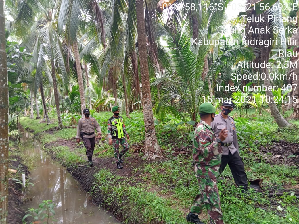 SERIBUPARITNEWS.COM, GAUNG ANAK SERKA - Pratu Candra Winata Babinsa Koramil 05/Gas Kodim 0314/Inhil dan rekan Bersama Polsek Melaksanakan Patroli Karhutlah di Lahan Perkebunan Kelapa di Kelurahan Teluk Pinang Kecamatan Gaung Anak Serka Senin (15/03/2021)