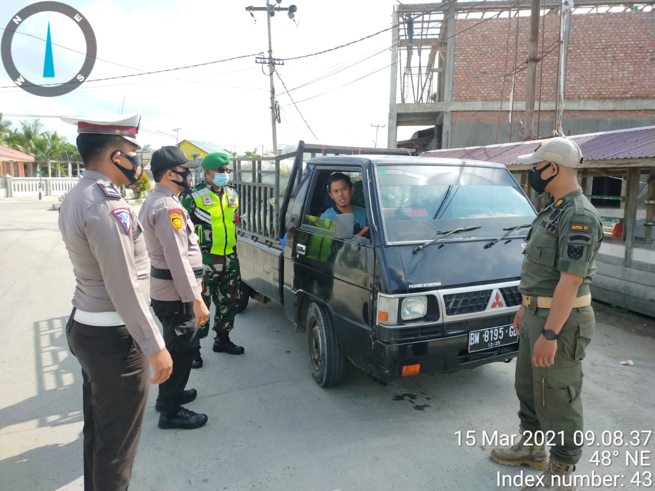 Serda Khairunnas Babinsa Koramil 01/Tembilahan Kodim 0314/Inhil Bersama Tim Gugus Mengecek Pengendara Roda Empat di Simpang 3 Parit Enam
