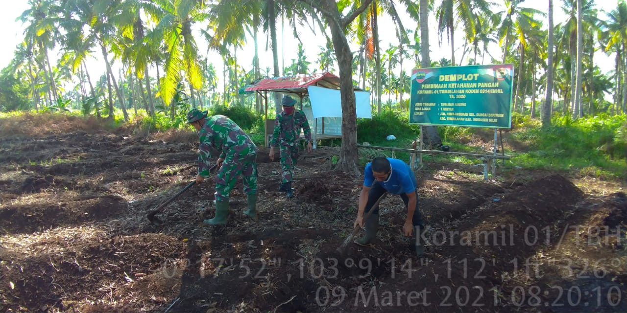 SERIBUPARITNEWS.COM, TEMBILAHAN - Demplot Ketahanan pangan Koramil 01/Tembilahan Kodim 0314/Inhil kembali melanjutkan demplot ketahanan pangan di Jalan Ujung Kelurahan Sungai Beringin Kecamatan Tembilahan Rabu (10/03/2021)