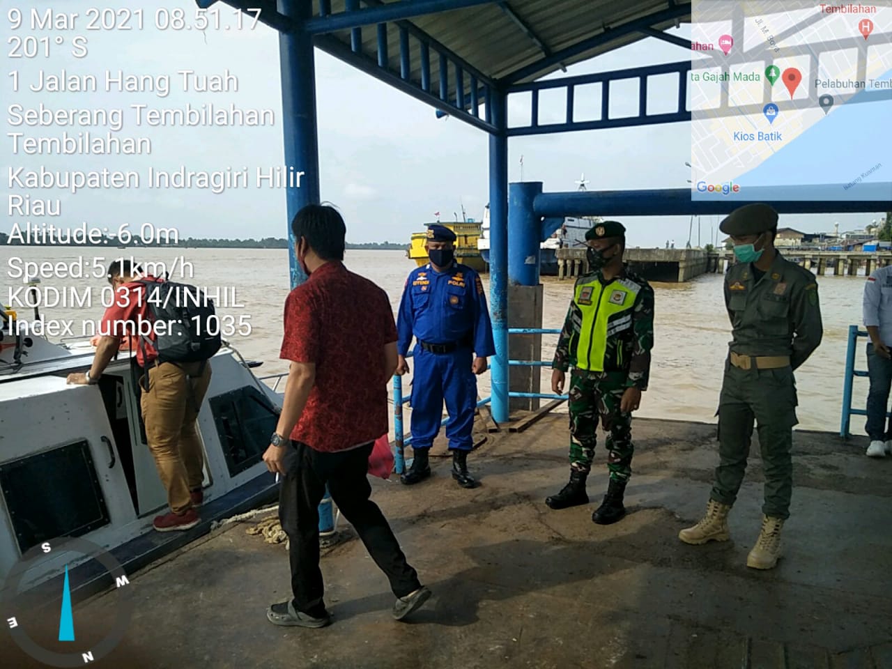 SERIBUPARITNEWS.COM, TEMBILAHAN - Sertu Zulfahri Babinsa Koramil 01/Tembilahan Kodim 0314 melaksanakan pengecekan Rapid test bagi penumpang yang datang melalui Kapal Indra Jaya dari Tembilahan menuju Pelabuhan Guntung di Pelabuhan Pelindo Selasa (09/03/2021)
