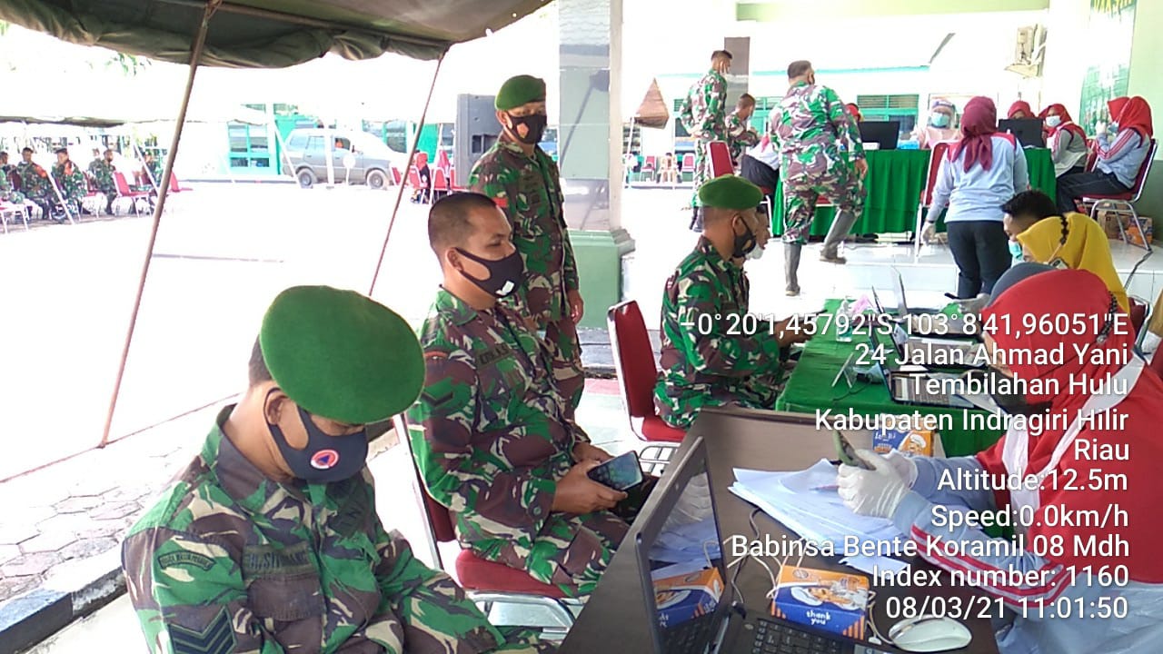 SERIBUPARITNEWS.COM, TEMBILAHAN -  Koramil 08/Mandah Kodim 0314/Inhil  Dipimpin Serka H.Situmorang bersama 2 anggota melaksanakan Suntik Vaksin Covid di Kodim 0314/Inhil Kecamayan Tembilahan Hulu Kab. Inhil Senin (08/03/2021)