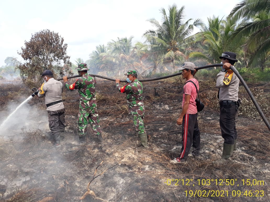 SERIBUPARITNEWS.COM,GAUNG - Babinsa Koramil 05/Gaung Anak Serka Kodim 0314/Inhil dipimpin  Serka Sasmito melaksanakan pemadaman dan pendinginan Karhutla di Desa Belantaraya Kecamatan Gaung Jumat (19/02/2021)