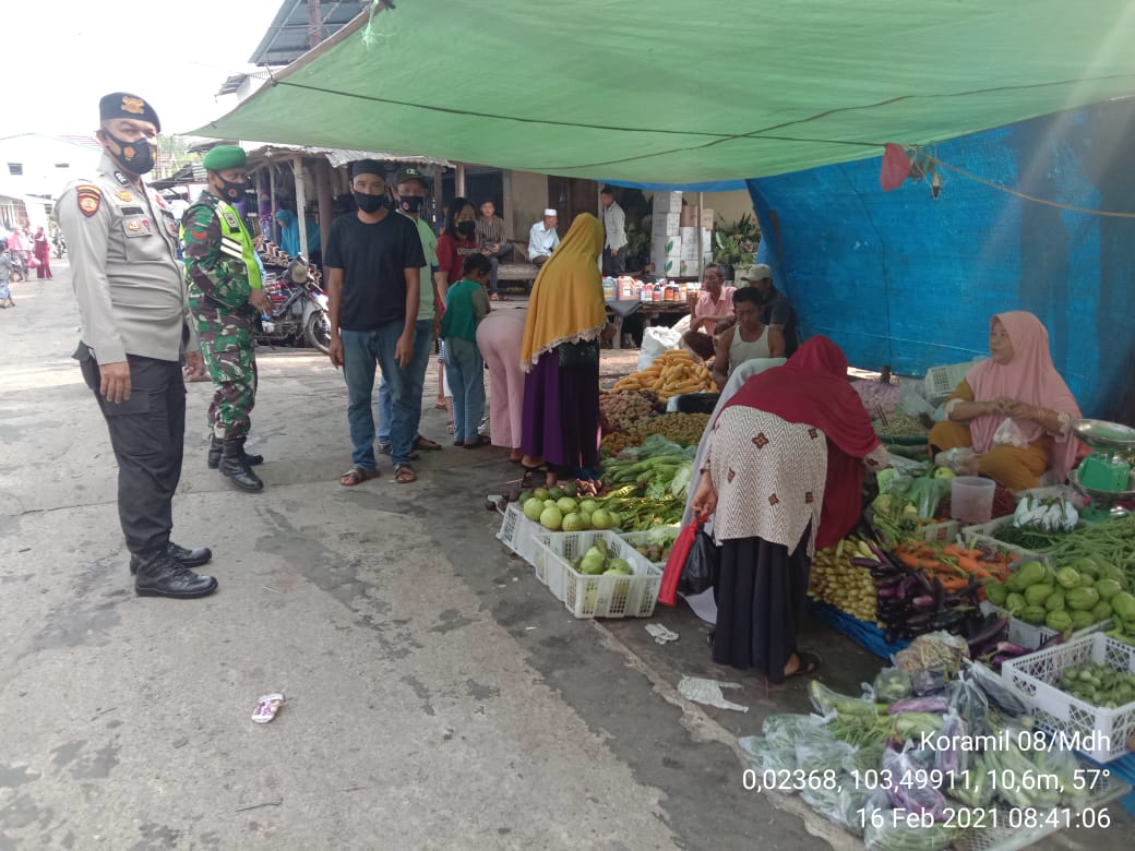 SERIBUPARITNEWS.COM, MANDAH - Babinsa Koramil 08/Mandah Kodim 0314/Inhil Koptu Adlis Melaksanakan Penegakan Disiplin Protokol Kesehatan Bersinergi dengan Anggota Polsek di pasar kantin tradisional Kelurahan Khairiah Mandah Kecamatan Mandah Kab. Inhil Selasa (16/02/2021)