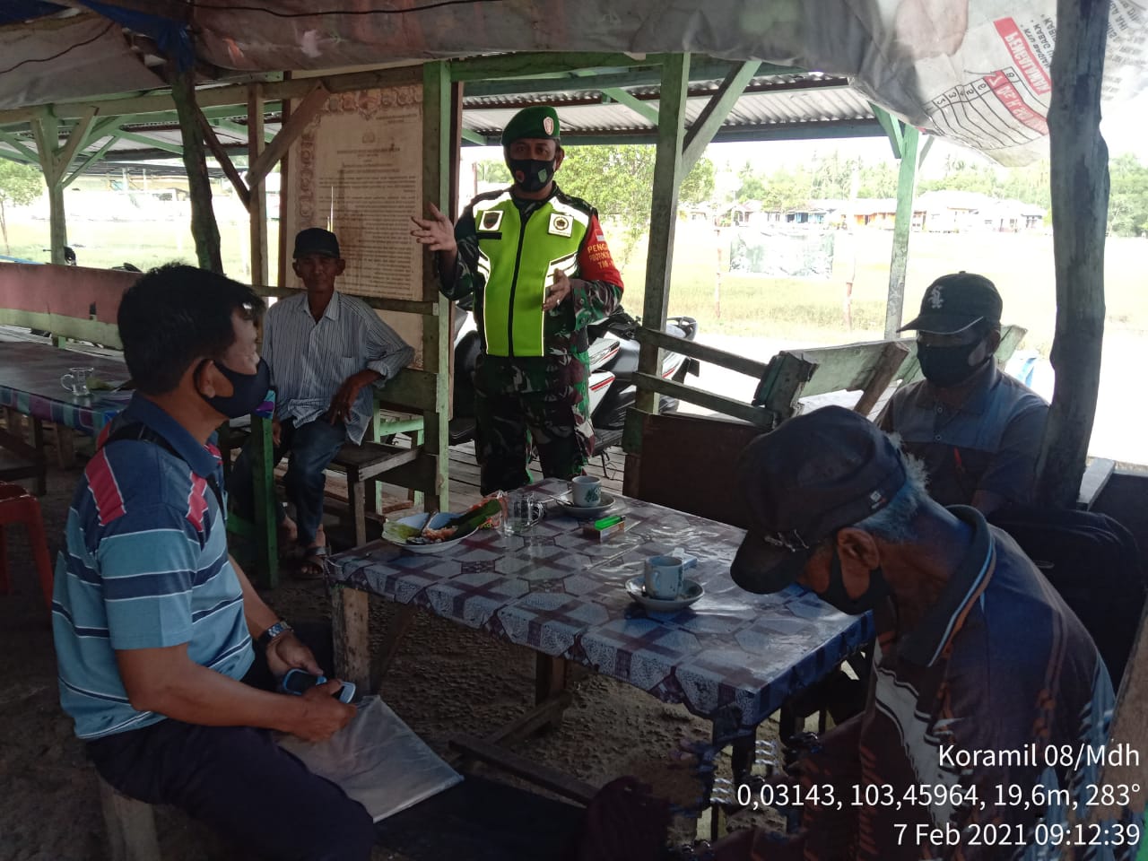 SERIBUPARITNEWS.COM, MANDAH - Babinsa Koramil 08/Mnadah Kodim 0314/Inhil Koptu Adlis Melaksanakan Penegakan Disiplin Protokol Kesehatan Covid -19 kepada warga yang berkumpul warung kopi di Pasar Mandah Kelurahan Khairiah Mandah Kecamatan Mandah Kab. Inhil Minggu (07/02/2021)