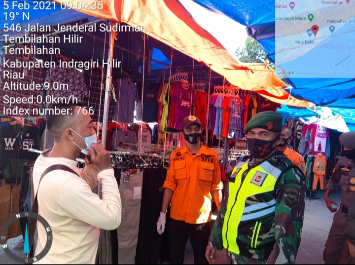 SERIBUPARITNEWS.COM, TEMBILAHAN - Sertu Surung Simbolon Babinsa Koramil 01/Tembilahan Kodim 0314/Inhil Melaksanakan Penegakan Disiplin Terpadu Protokol Kesehatan  Pos Air Mancur di Jalan Jenderal Sudirman Tembilahan Jumat (05/01/2021)