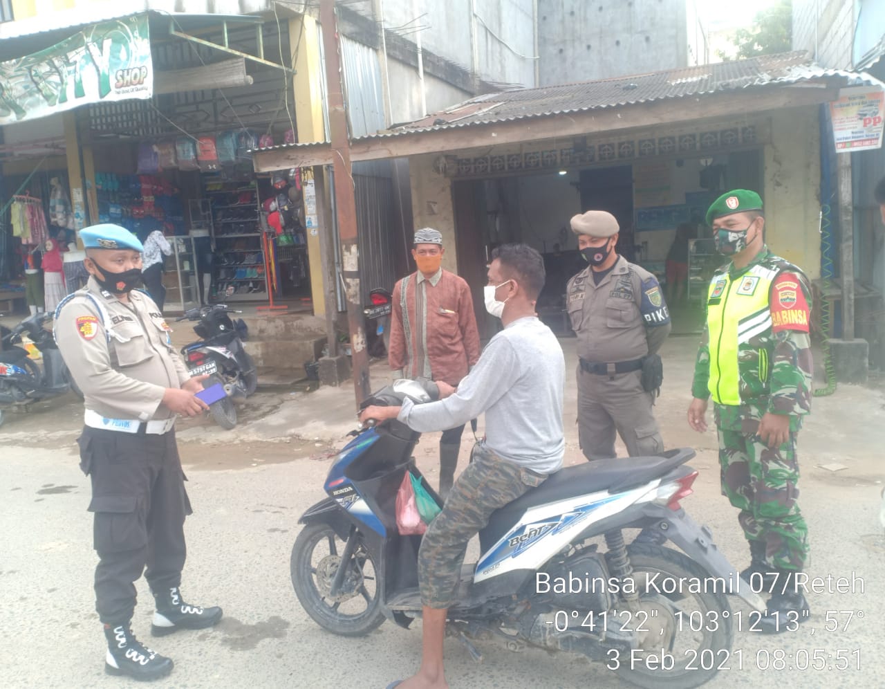 Babinsa Koramil 07/Reteh Bersama Team Gugus tugas Kecamatan Reteh Ajak Warga Patuhi Protokol Kesehatan Covid-19