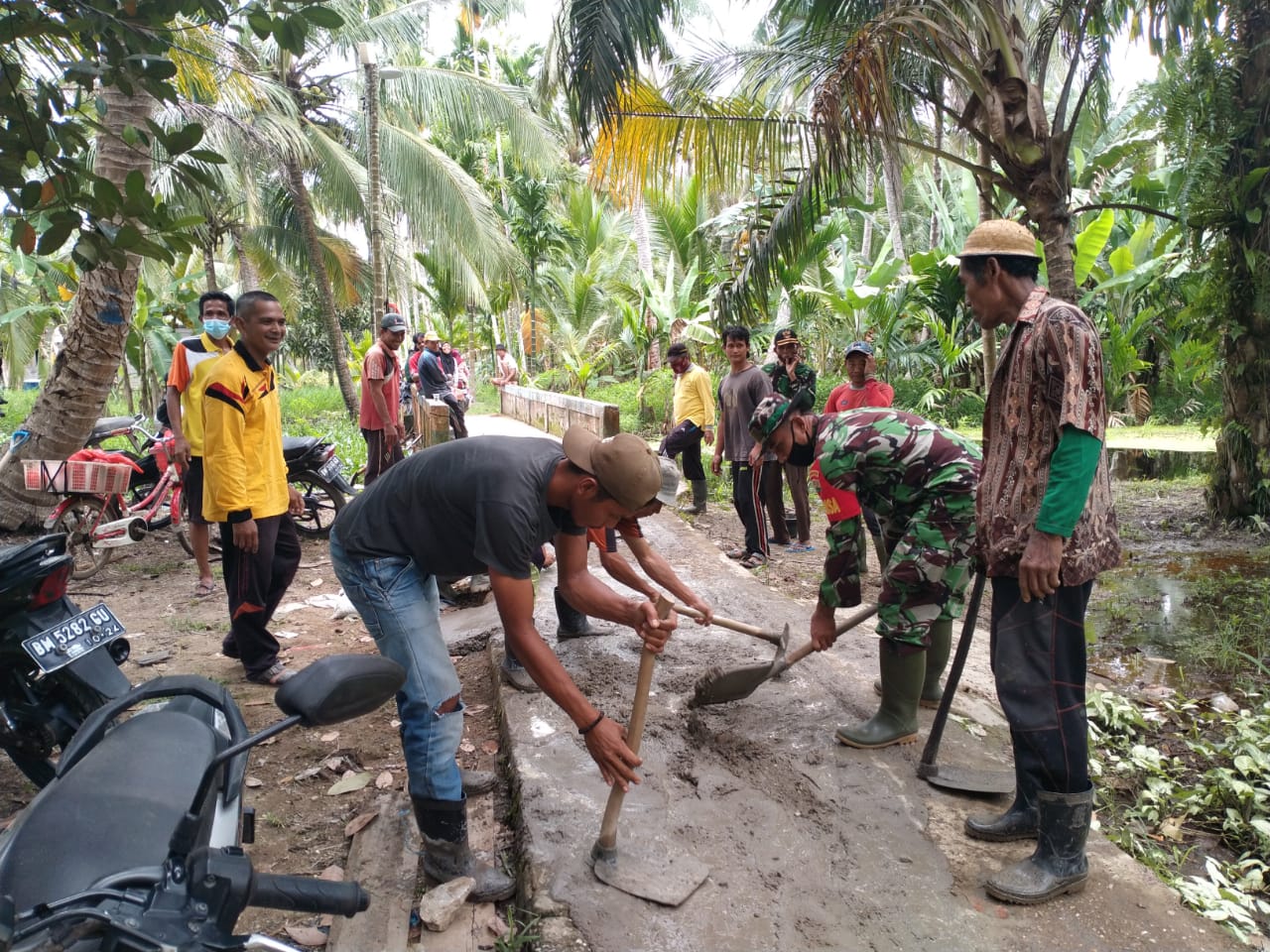 Kepala Desa Sialang Panjang H.Yusuf Kurnain Memimpin langsung bersama  warga bahu membahu melaksanakan gotong royong tersebut agar perbaikan cepat selesai
