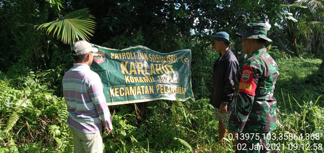 SERIBUPARITNEWS.COM,PELANGIRAN - Babinsa Lubuk Kempas Koramil 10/Pelangiran Kodim 0314/Inhil Serda Dodi Eka Putra Melaksanakan Patroli dan Sosialisasi Karhutlah dengan  masyarakat binaanya di desa lubuk Kempas Kecamatan Pelangiran Kabupaten Indragiri Hilir Sabtu (02/01/2021)