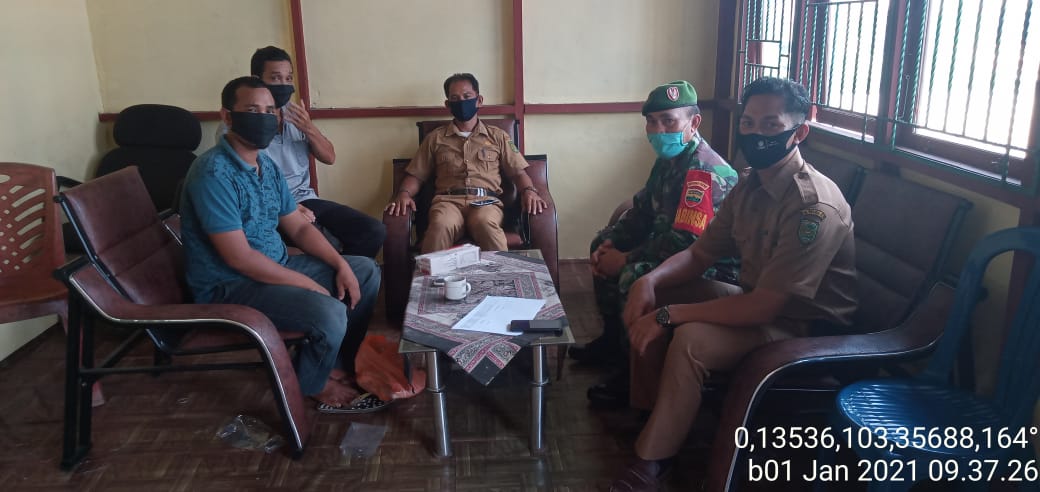 Serda Dodi menyamakan persepsi dengan aparatur desa setempat dalam penegakkan disiplin di awal tahun 2021, serta menyampaikan beberapa program kerja Babinsa yang disinkronkan dengan program desa setempat