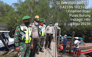 SERIBUPARITNEWS.COM,PULAU BURUNG - Sebagai Upaya dalam memutus mata rantai penyebaran covid -19, Babinsa Koramil 11/Pulau Burung Kodim 0314/Inhil melaksanakan pengawasan terpadu penegakkan disiplin protokol kesehatan di Pelabuhan Penumpang Senin (22/12/2020)