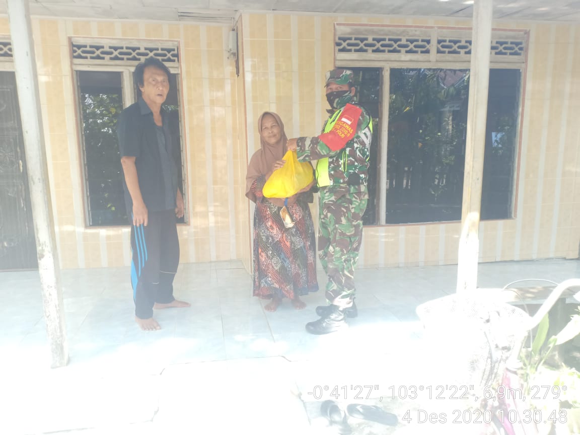 Bantuan berupa beras, gula, minyak goreng ini adalah sumbangan dari Koramil 07/Reteh untuk warga yang kurang mampu dan diserahkan oleh Babinsa desa masing masing.