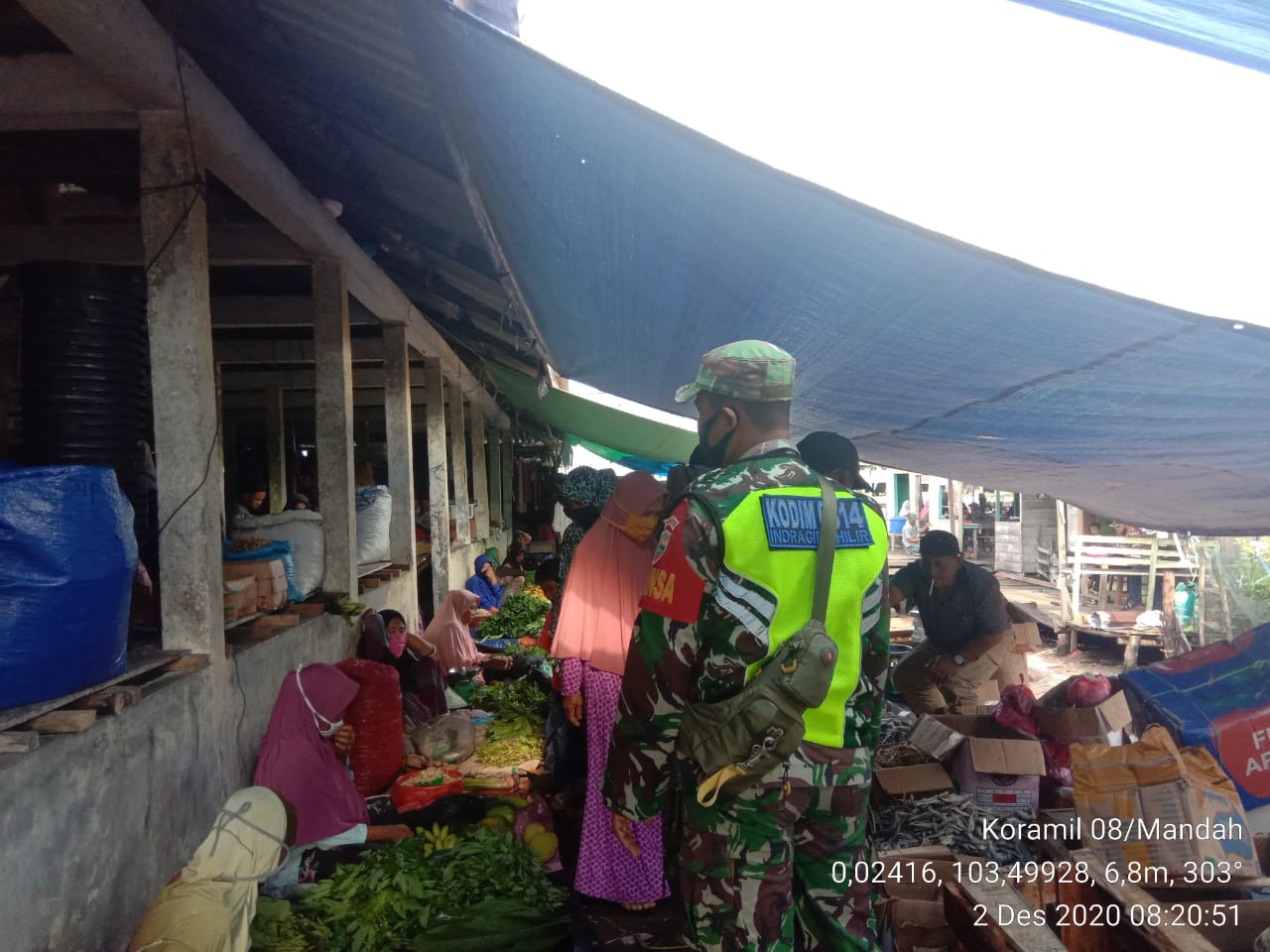 SERIBUPARITNEWS.COM, MANDAH - Babinsa Koramil 08/Mandah Kodim 0314/Inhil Serda Erik A Sibarani Melaksanakan sosialisasi Gakplin Prokes Covid dengan masyarakat di Warung kopi dan pasar Sendawa Desa Bakau Aceh Kecamatan Mandah Kabupaten Inhil Selasa (02/12/2020)