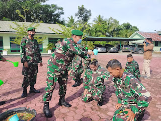 Dalam prosesi korps Rapor kenaikan pangkat tersebut dihadiri personil Koramil yang lainnya dengan mandi kembang secara simbolis diguyurkan ke badan oleh Kasdim 0314/Inhil Letkol Inf.Untung Kusmanto