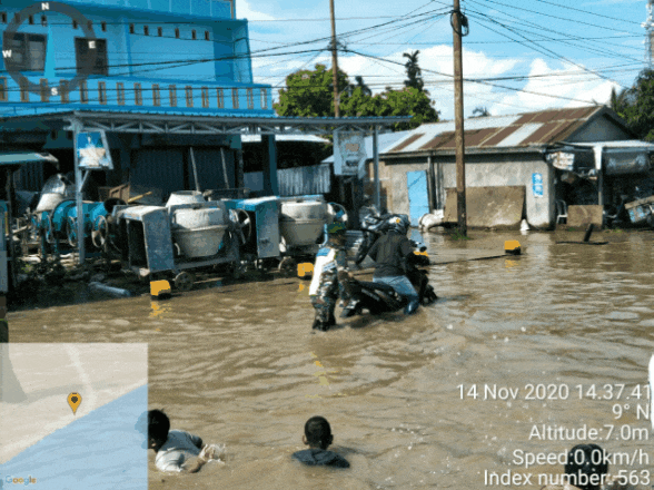Ini harus kita sikapi dengan positif dan berhati hati bagi pengendara bermotor ketika melintas di genangan air sebut Serma Indra Mukri