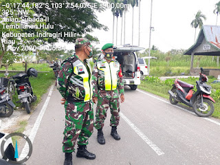 SERIBUPARITNEWS.COM, TEMBILAHAN - Personil Koramil 01/Tembilahan Serma Indra Mukri dan Sertu Sulung Simbolon melaksanakan pengamanan prosesi pemakaman warga yang terpapar Covid -19 Minggu (01/11/2020)