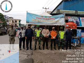 SERIBUPARITNEWS.COM, TEMBILAHAN - Pelda Jaharzam Mewakili Personil Koramil 01/Tembilahan tetap konsisten melakukan pengawasan terpadu protokol kesehatan Minggu (01/11/2020)