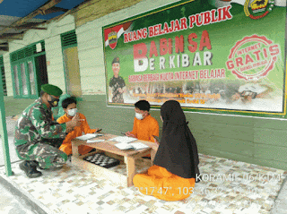 SERIBUPARITNEWS.COM, KATEMAN - Kodim 0314/Inhil melalui Babinsa Koramil 06/Kateman Sertu Pujiantoro galakkan gerakan peduli pendidikan melalui Program Babinsa Berkibar (Babisna Berbagi Kuota Internet Belajar)