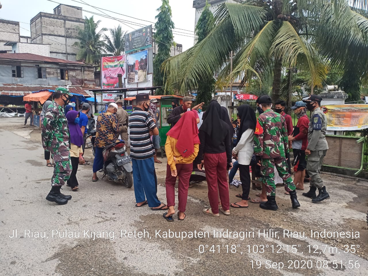 Kegiatan ini dilaksanakan di Pasar Tradisional dan tempat keramaia,Pulau Kijang  Kecamatan Reteh Kabupaten Inhil,Sabtu (19/09/20)