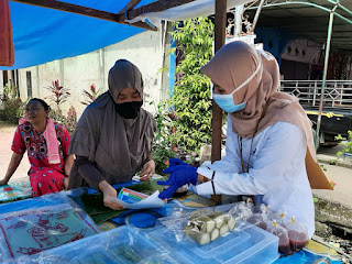 Selanjutnya dilakukan pembinaan dan edukasi kepada pedagang makanan takjil dan masyarakat dengan memberikan leaflet dan brosur tentang kualitas dan keamanan pangan dan Tips pencegahan penularan covid-19.