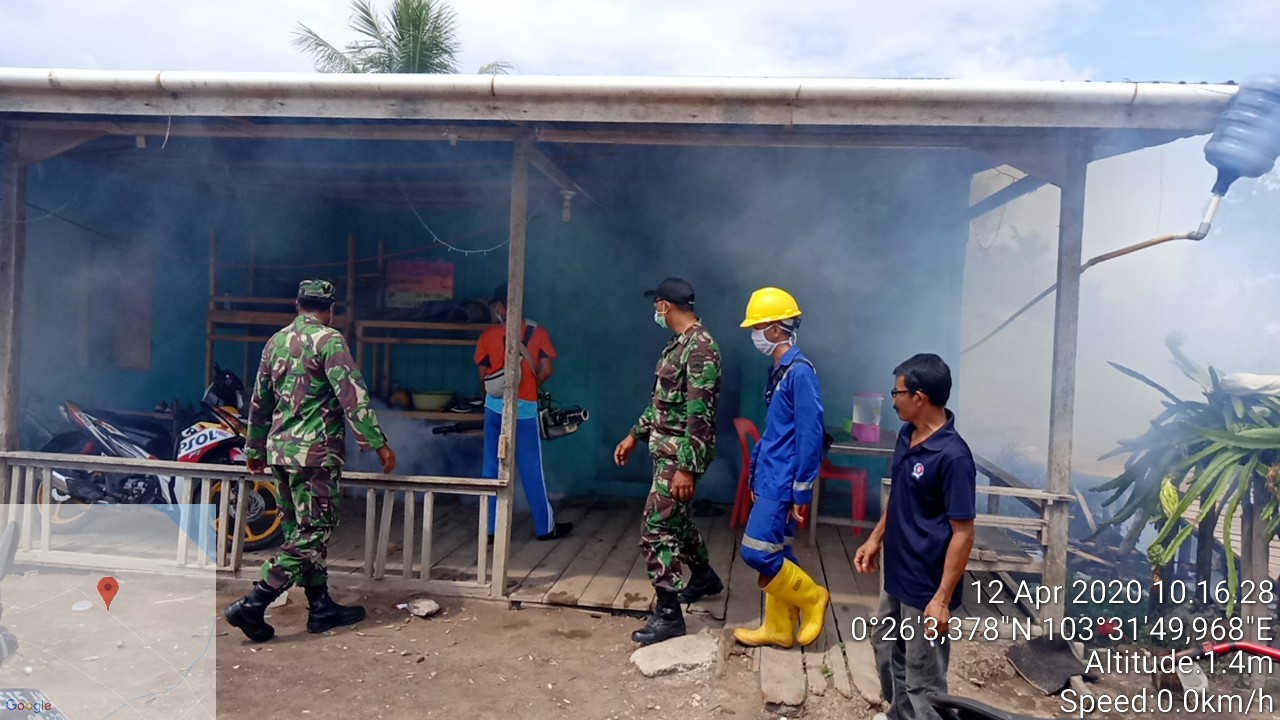 SERIBUPARITNEWS.COM PULAUBURUNG - Menghadapi Musim Panca Roba yang berakibat mulai mewabahnya Demam berdarah Babinsa Koramil 11 Pulau Burung dipimpin Serda Ratno bersama PT.RSUP melaksanakan Foging Minggu (12/04/2020)