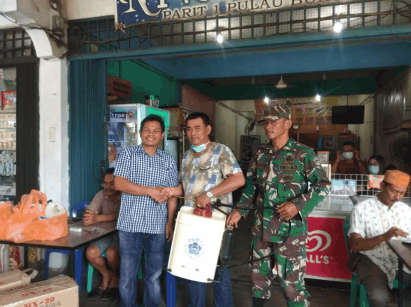 SERIBUPARITNEWS.COM, PULAUBURUNG - Ketua Paguyuban Sosial Marga Tionghoa Indragiri Hilir Kecamatan Pulau Burung Menyerahkan bantuan alat semprot dan desinfektan untuk Penanggulangan Covid -19 di Kecamatan Pulau Burung Jumat (03/04/2020) bertempat di Pasar Pulau Burung