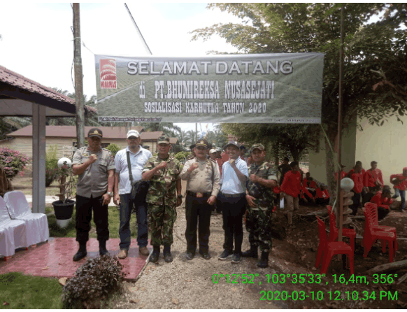 SERIBUPARITNEWS.COM, PELANGIRAN - Pjs. Danramil 08 Mandah Pelda Suryadi mengikuti Sosialisasi Pencegahan Karlahut oleh PT. BNS ( Bhumireksa Nusa Sejati ) Rabu (10/03/2020).