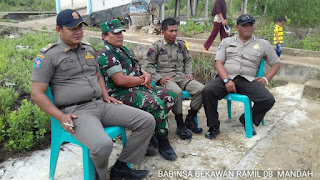 PJS Danramil 08/Mandah Pelda Suriyadi menegaskan kepada Anggota Babinsa yang melaksanakan tugas Pengamanan Pilkades Di Wilayah Kecamatan Mandah Kabupaten Inhil, sudah menjadi tugas dan tanggung jawab kita sebagai aparat teritorial untuk menjaga situasi keamanan dan ketertiban masyarakat agar tercipta suasana yang kondusif dalam pelaksanaan pemilihan." tegasnya.