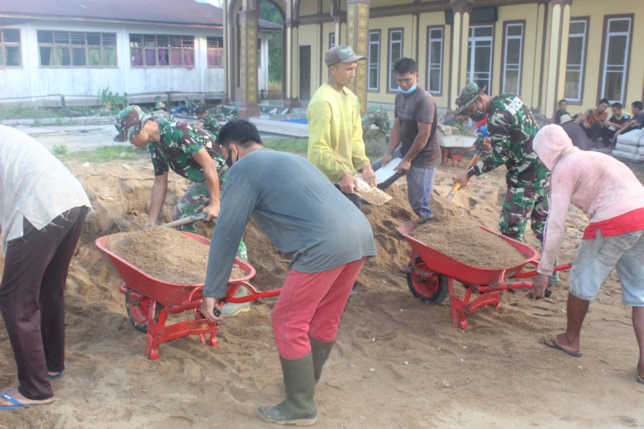 Kegiatan gotong royong ini sebagai kepedulian masyarakat terhadap gedung majelis ta'lim Al Musthofal Amin yang saat ini di pakai TNl sebagai Posko TMMD ke 111 Kodim 0314/lnhil tahun 2021.