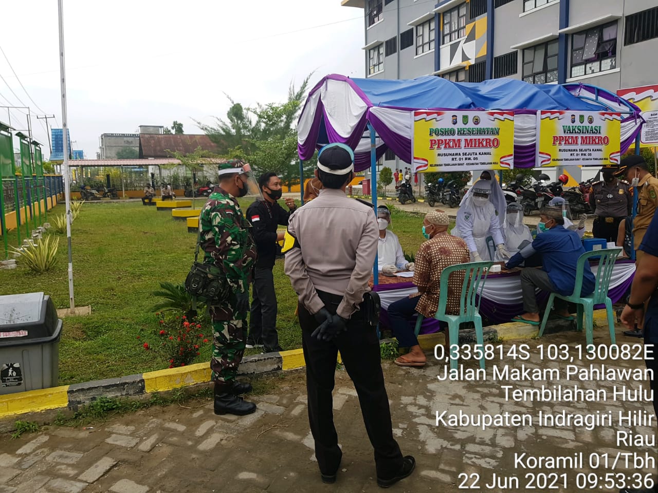 SERIBUPARITNEWS.COM, TEMBILAHANHULU - Serda Adri Chandra Babinsa Koramil 01/Tembilahan Kodim 0314/Inhil Bersama Tim Melaksanakan Simulasi Pos PPKM Selasa (22/06/2021)