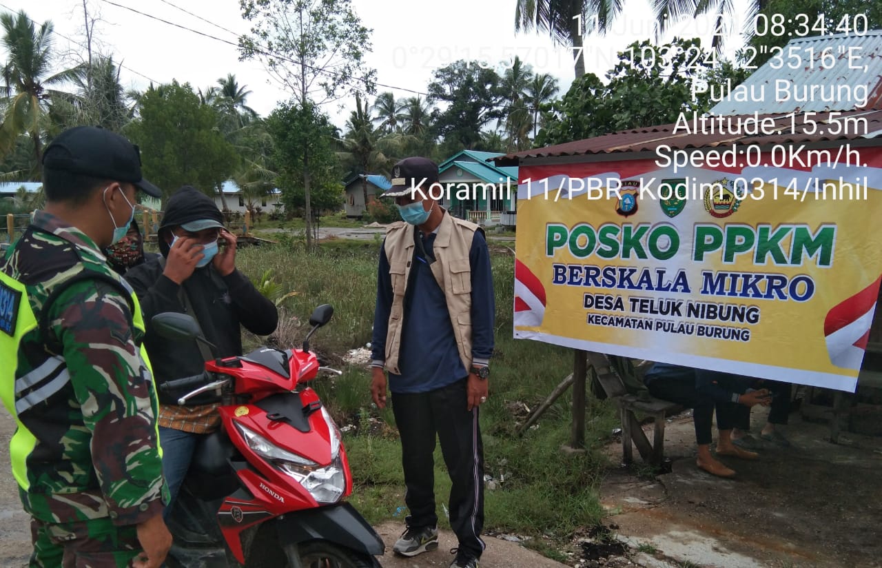 SERIBUPARITNEWS.COM, PULAUBURUNG - Babinsa Koramil 11/Pulau Burung Kodim 0314/Inhil Serda Siswanto bersama staf Desa Teluk Nibung Melaksanakan Peningkatan Penegakkan Disiplin Protokol Kesehatan Covid-19 Jumat (11/06/2021)