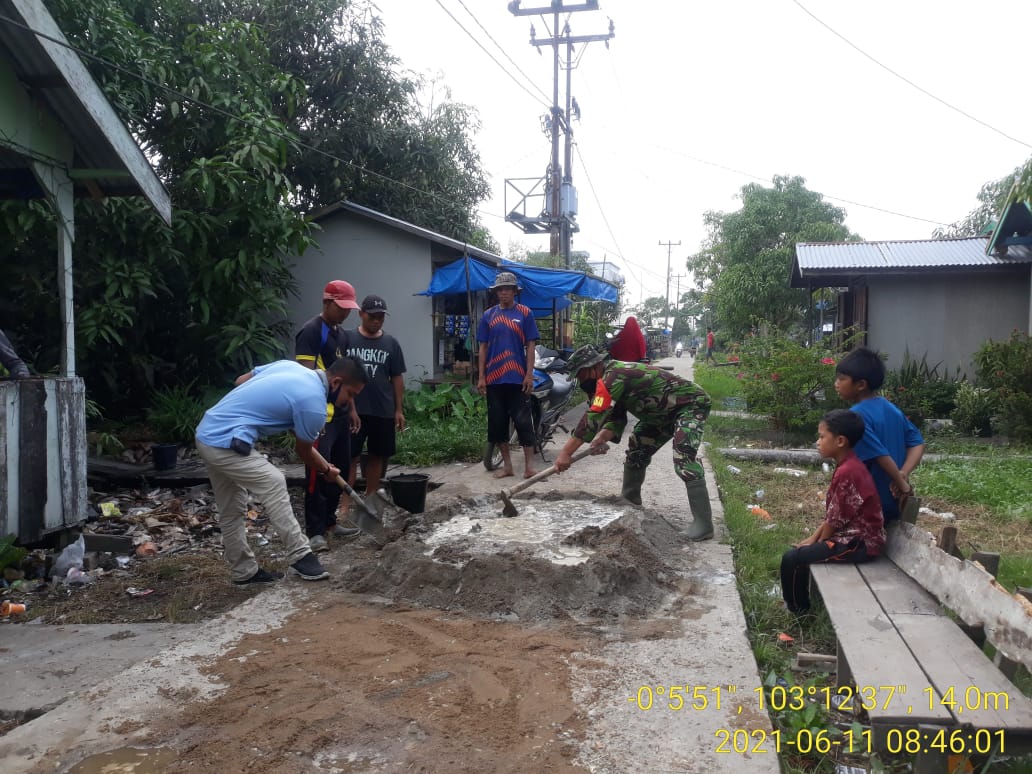 Dalam gotong royong pagi ini Babinsa didamping Kepala Desa,Kepala Desa,RT dan RW