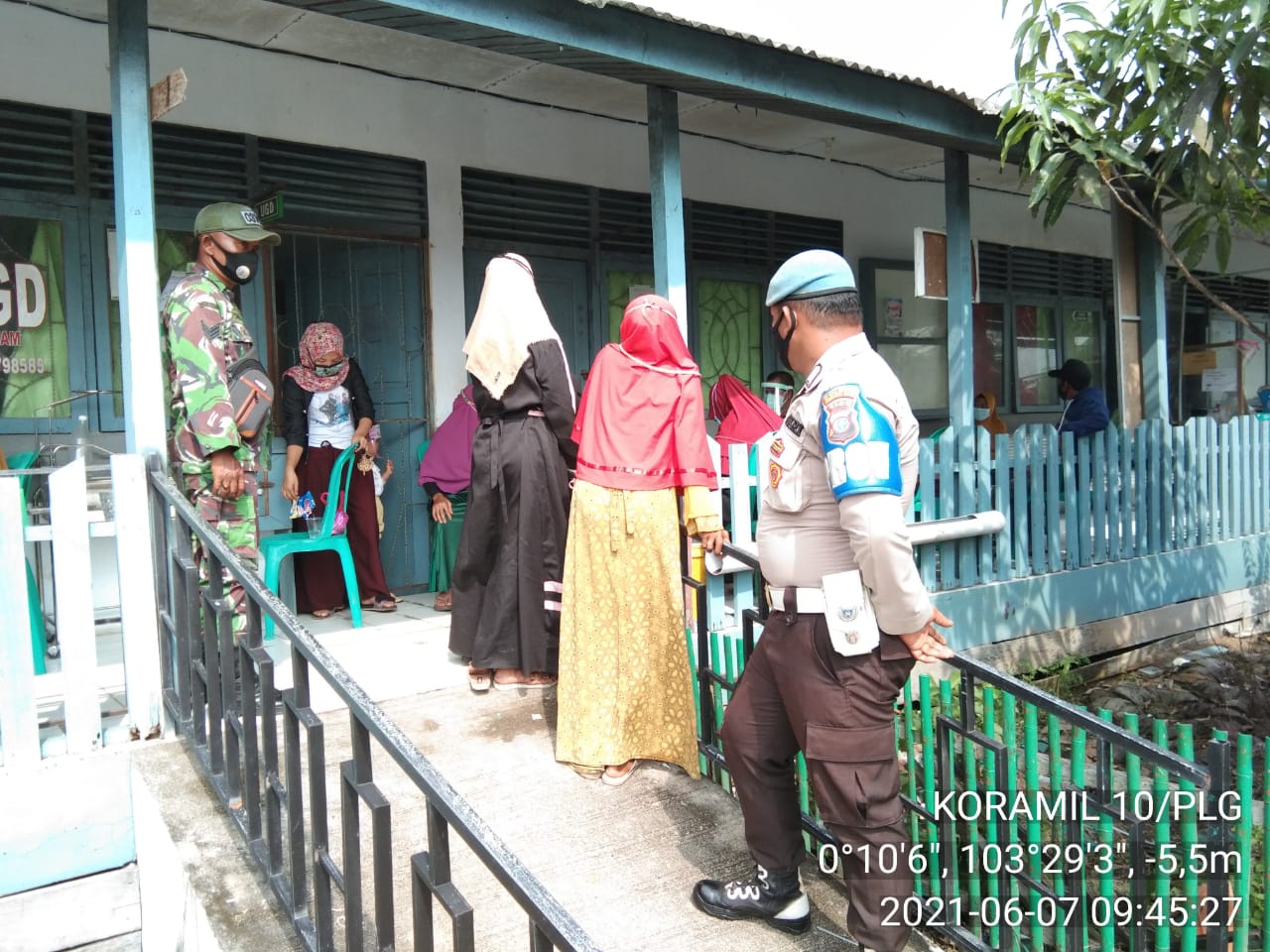 SERIBUPARITNEWS.COM,PELANGIRAN - Babinsa Koramil 10/Pelangiran Kodim 0314/Inhil  Serka Sugianto melaksanakan kegiatan pengawasan penyuntikan vaksin kepada lansia,pelayan publik dan masyarakat Senin (07/06/2021)