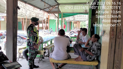 SERIBUPARITNEWS.COM, GAUNG ANAK SERKA - Babinsa Koramil 05/Gas, Praka Nico melaksanakan penegakan disiplin  protokol kesehatan  kepada warganya Minggu (06/06/2021)